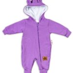 Baby Nellys ® Teplákový overal s kapucňou – fialový, veľ. 80