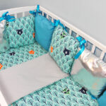 Baby Nellys Vankúšikový mantinel s obliečkami Shine – lesik tyrkys, 120×90, 40x60cm