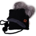 BABY NELLYS Zimná čiapka s fleecom a chlupáčka. bambuľky Star + komínok – čierna, 104/116