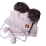 BABY NELLYS Zimná čiapka s fleecom a chlupáčka. bambuľky Star + komínok – sivá, 98/104