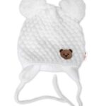 BABY NELLYS Zimná pletená čiapka Teddy Bear na zaväzovanie, biela, smotana, 68/80, (6-12m)