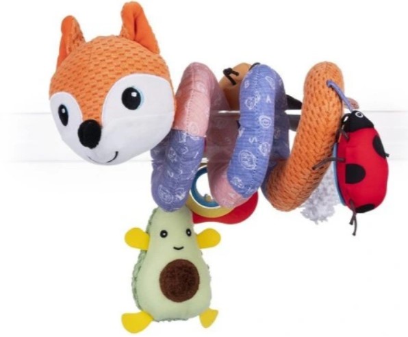 Líška obyčajná s veselým tímom vás pozývajú na multifunkčnú zábavu! Táto krásna špirála je vyrobená z rôznych materiálov, ktoré stimulujú hmat dieťaťa. Roztomilé avokádo vtipne hrká, prívesok s korálkami bude skvelým hryzátkom, lienka s bezpečným zrkadlom sa zoznámi s dieťaťom a včielka rozveselí okúzľujúcim pištením.