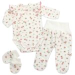Bavlnená 3D sada, zavinovacie body, polodupačky + rukavičky, Amélia, biela/ružová, veľ. 62