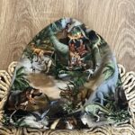Bavlnená čiapočka Mamatti, Dino park – zelená s potiskem, veľ. 2-3 roky