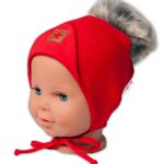 Bavlnená dvojvrstvová čiapka s brmbolcom na zaväz. Star – červená, vel. 68/80