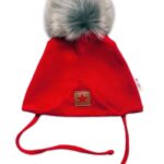Bavlnená dvojvrstvová čiapka s brmbolcom na zaväz. Star – červená, vel. 80/86