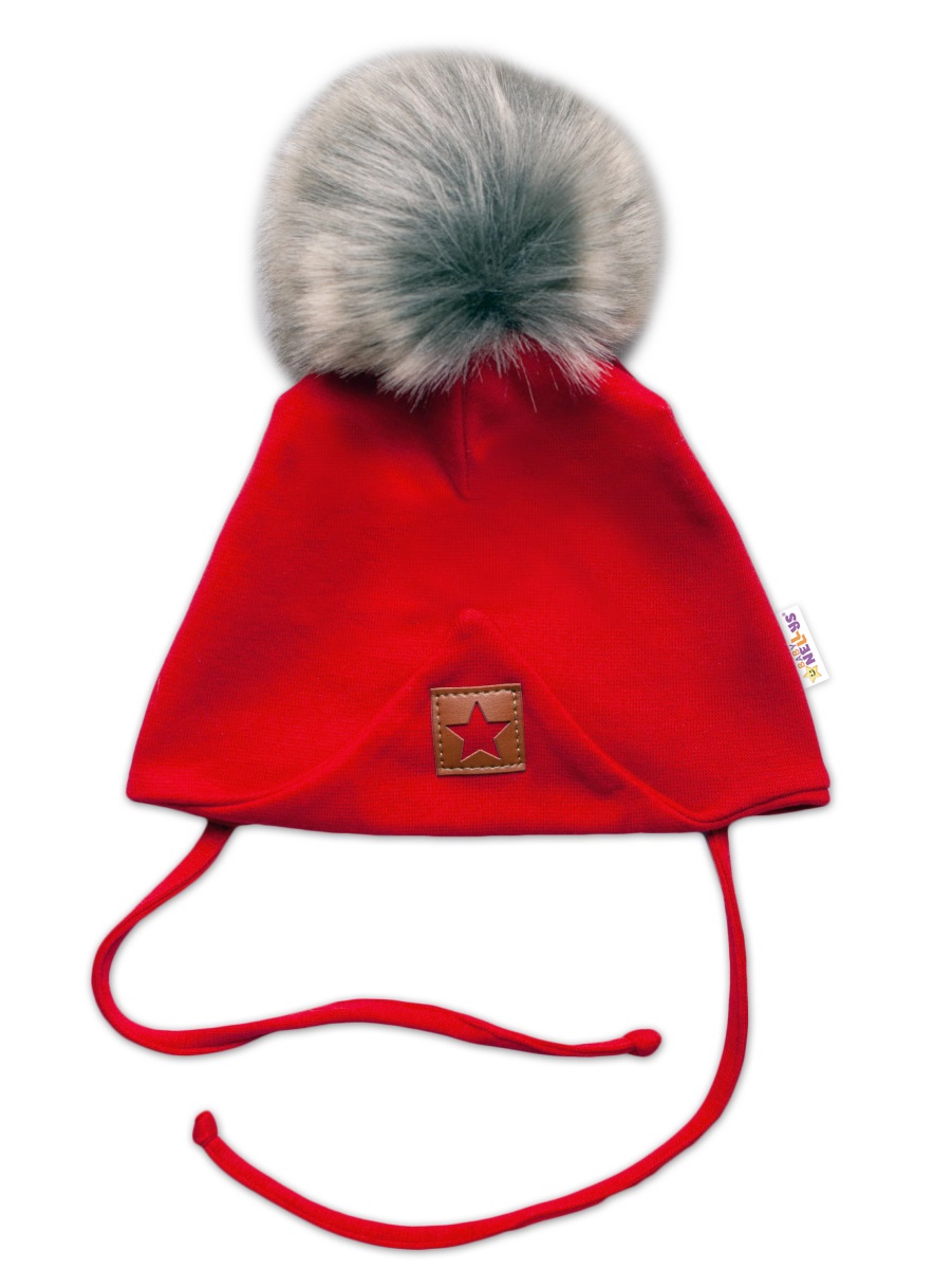 Bavlnená dvojvrstvová čiapka s brmbolcom na zaväzovanie Star – červená