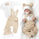 Bavlnená súprava Gentleman 3D, body, polodupačky s lacnom + čiapočka, béžová/biela, veľ.62