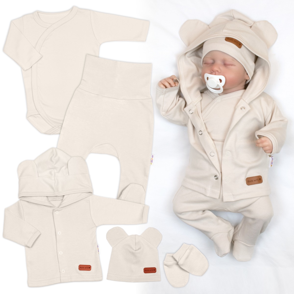 Bavlnená súprava pre bábätko do pôrodnice 5D, Made with love, ecru, veľ. 56