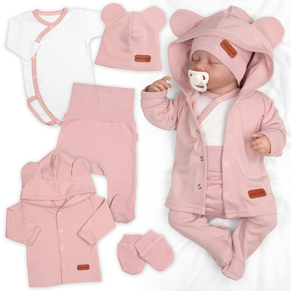Bavlnená súprava pre bábätko do pôrodnice 5D, Made with love, pudrová, veľ. 56