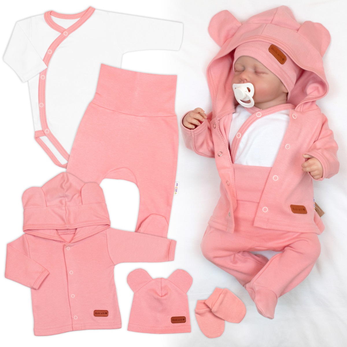 Bavlnená súprava pre bábätko do pôrodnice 5D, Made with love, růžová, veľ. 62