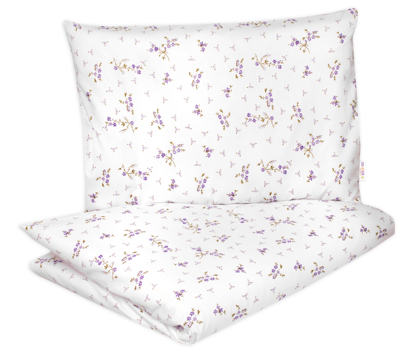 Bavlnené obliečky, 2D 140×200/70×80 – Levanduľa, Baby Nellys, biela/fialová