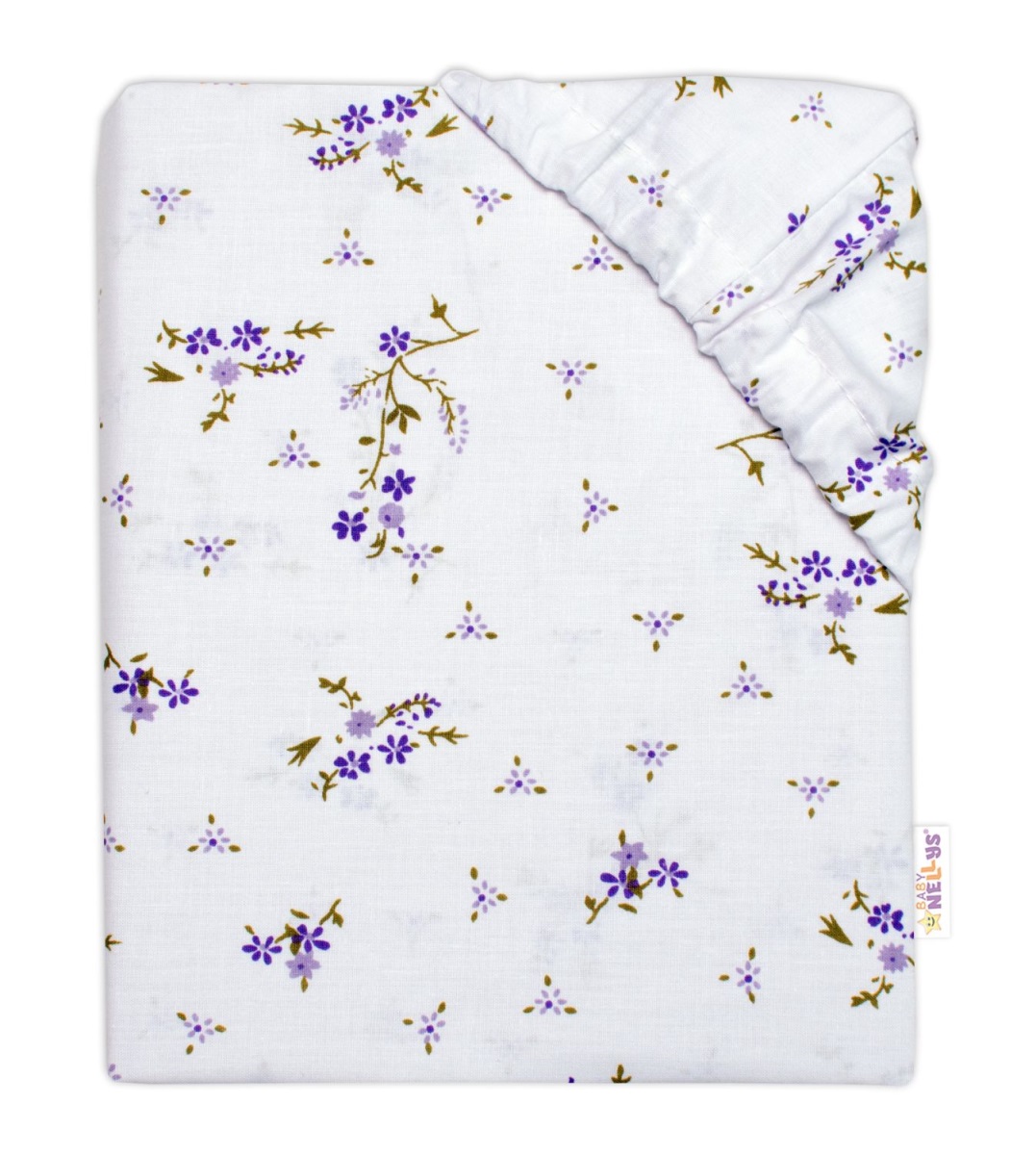 Bavlnené prestieradlo, Levanduľa, Baby Nellys, biela/fialová, 140×70 cm