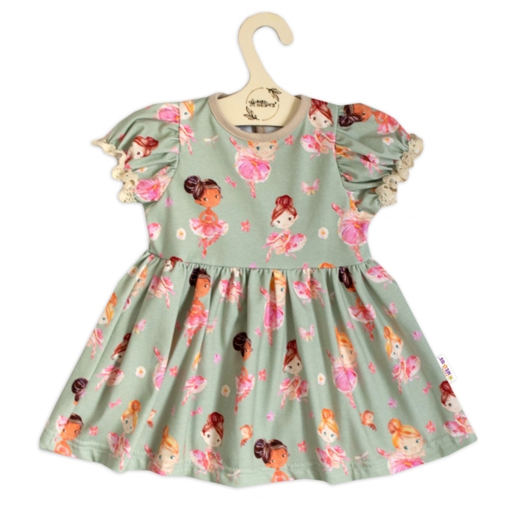 Bavlnené šatôčky s ozdobným rukávom Baletka, Baby Nellys, olivové, veľ. 80