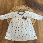 Bavlnené šaty s mašličkou, dl. rukáv, Puntík, Mamatti, smotanové s potlačou, veľ. 92
