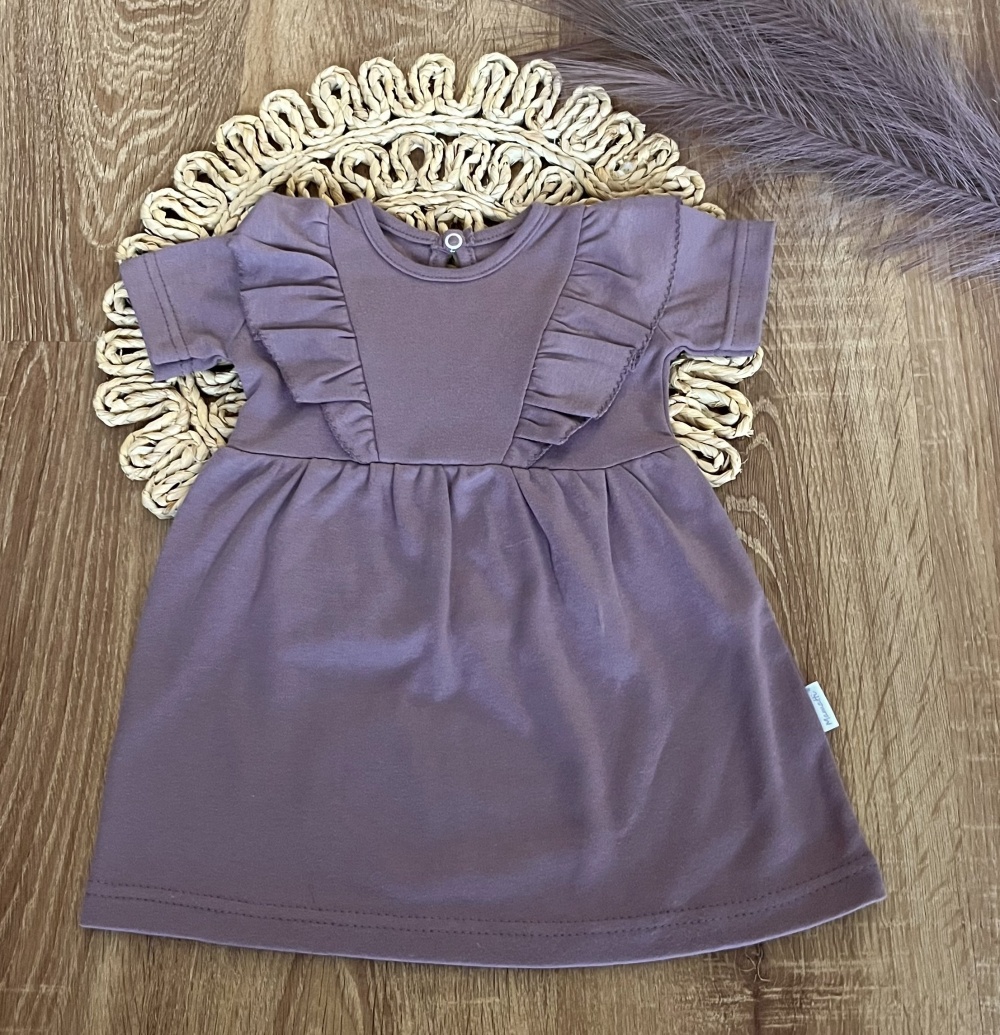 Bavlnené šaty s riasením, kr. rukáv, Puntík, Mamatti, slivkové