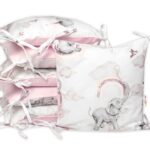 Bavlnený vankúšikový mantinel Baby Nellys, Slon a Dúha, ružová/biela