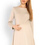 Be MaaMaa Elegantné voľné tehotenské šaty dl. rukáv – béžové, XXL