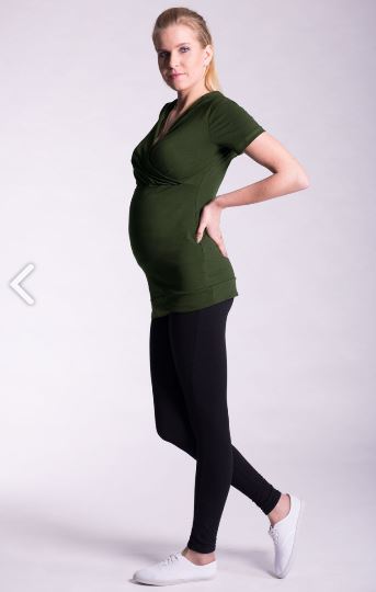 Be MaaMaa Tehotenské a dojčiace tričko s kapucňou, kr. rukáv – khaki