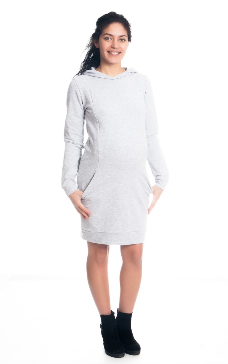 Be MaaMaa Tehotenské / dojčiace šaty Anais s kapucňou, dlhý rukáv – sv. sivé, veľ. XL