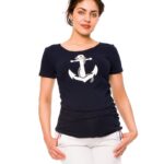 Be MaaMaa Tehotenské tričko / blúzka SRDCE dl. rukáv – tm.modrá