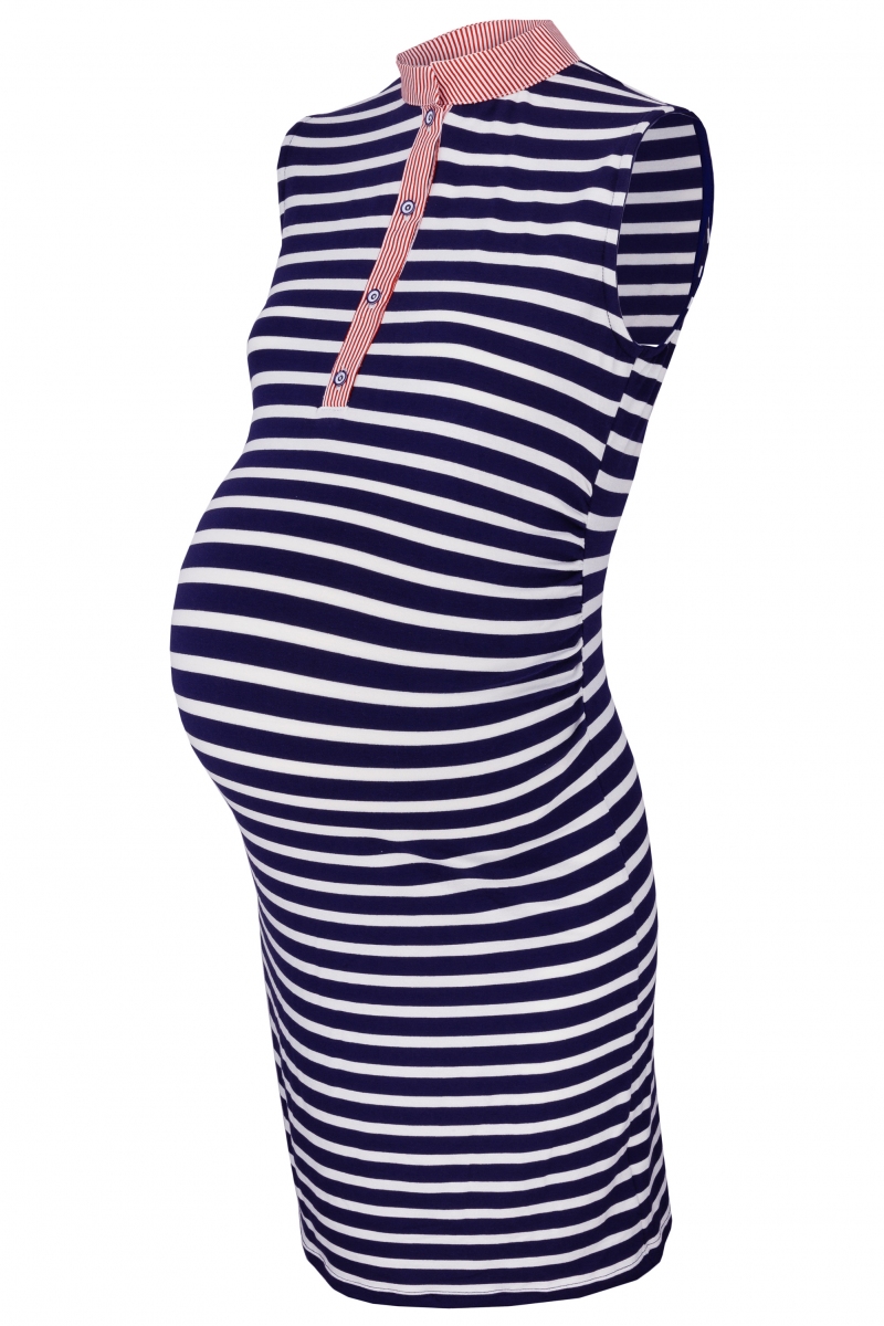 Be MaaMaa Tehotenské prúžkované šaty so stojáčikom – ecru/ganat, vel´. XXL