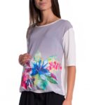 Blúzka sa dokonale hodí v čase těhotenství.Krásně vytlačená kvetina dodáva blúzke svoje jedinečné čaro.