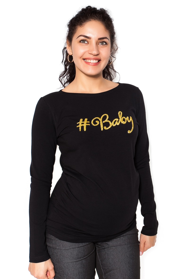 Be MaaMaa Tehotenské tričko dlhý rukáv Baby – čierné – S