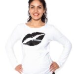 Be MaaMaa Tehotenské tričko dlhý rukáv Kiss – biele – L