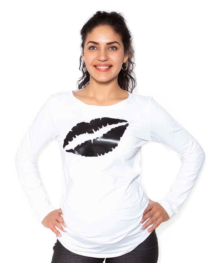 Be MaaMaa Tehotenské tričko dlhý rukáv Kiss – biele
