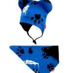 BEXA dvojvrstvová čiapka na zaväzovanie s uškami + šatka – Labky, granát, veľ. 80/92