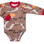 Body dl. rukáv, bavlna, zapínanie pri krku Mrofi, RACE – hnědé, veľ. 80