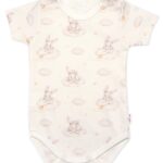 Body kr. rukáv, bavlna, zapínanie pri krku, Baby Nellys Králičkovia, krémové, veľ. 74