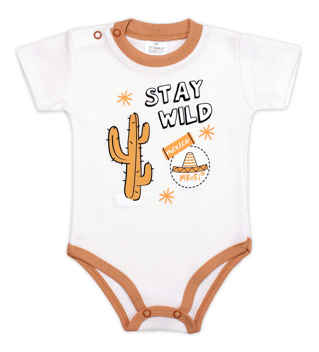 Body kr. rukáv, bavlna, zapínanie pri krku Mexiko Mrofi, ecru, veľ. 74