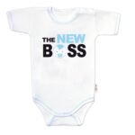 Body krátky rukáv s vtipným textom Baby Nellys, The New Boss, veľ. 74, chalan