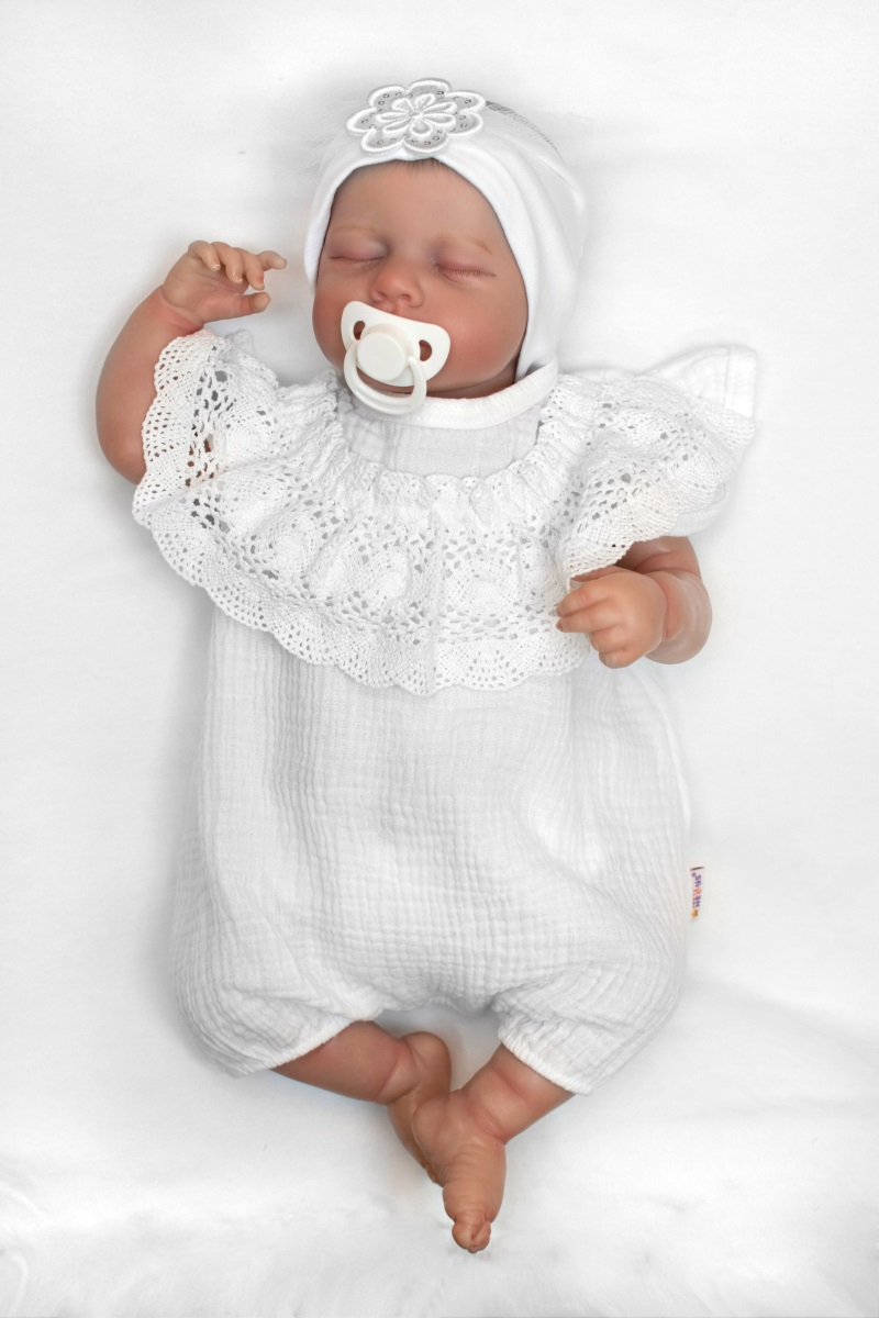 Body s nohavičkami, mušelín, s čipkou – biele, veľ. 86