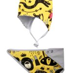 Čiapka dvojvrstvová na zaväzovanie + šatka, Zvieratká, Bexa – horčicová