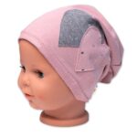 Detská čiapka bavlna, Srdiečka s kamienkami, Baby Nellys, púdrová, veľ. 104/134