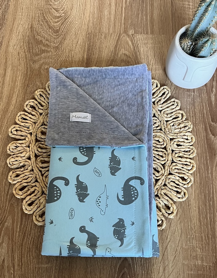 Detská obojstranná deka Mamatti, bavlna/velvet, 80 x 90 cm, Dino park – modrá/šedá