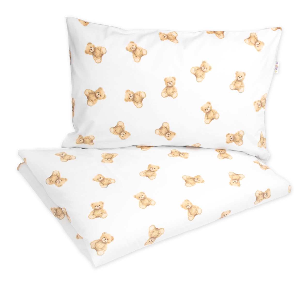 Detské obliečky, bavlna 2D 140×200/70×80 – Míša – biela s potlačou