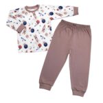 Detské pyžamo 2D sada, tričko + nohavice, Cosmos, Mrofi, béžová/biela, veľ. 110
