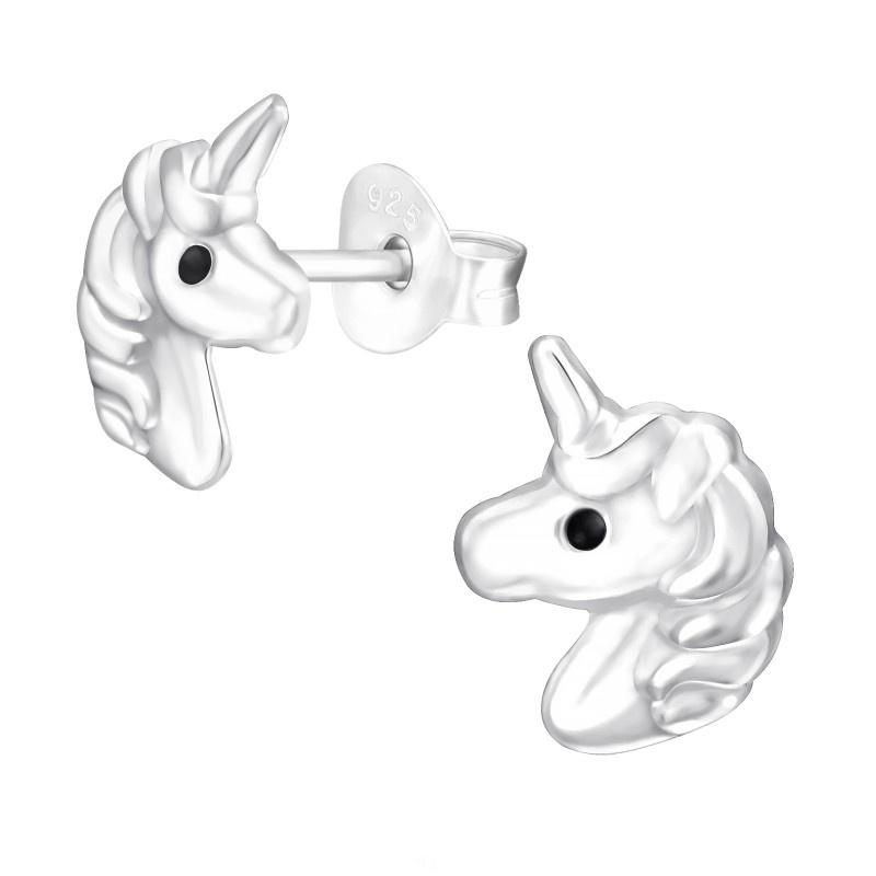 Detské strieborné náušničky Jednorožec, puzetové
