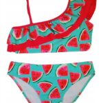 Dievčenské dvojdielne plavky s volánikom – Noviti, Melón, tyrkys/ružová, veľ. 152/158