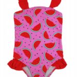 Dievčenské jednodielne plavky s volánikmi – Noviti, Melón, ružové, veľ. 116/122