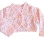 Dievčenské pletené, ažúrkové bolerko, dl. rukáv – sv. ružové, veľ. 80