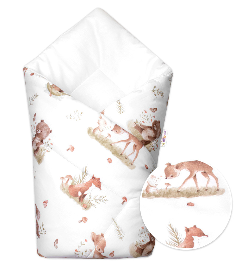 Dojčenská Zavinovačka klasik Roztomilé zvieratká, biela/hnedá
