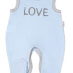 Dojčenské bavlnené dupačky Love – modré, veľ. 68