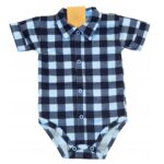 Jedinečné košeľové body pre chlapca, s elegantným čierno-modrým kockovaným vzorom.