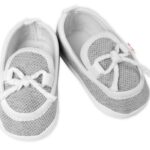 Dojčenské originálne a elegantné mokasíny v siví farbe.