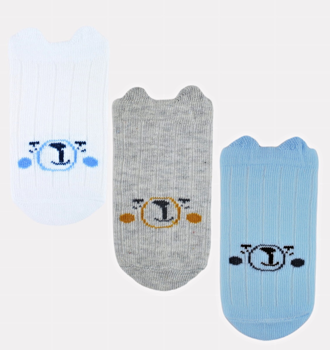 Dojčenské ponožky, 3 páry – Noviti – Medvedík, biela/modrá/sivá, veľ. 12-18 m
